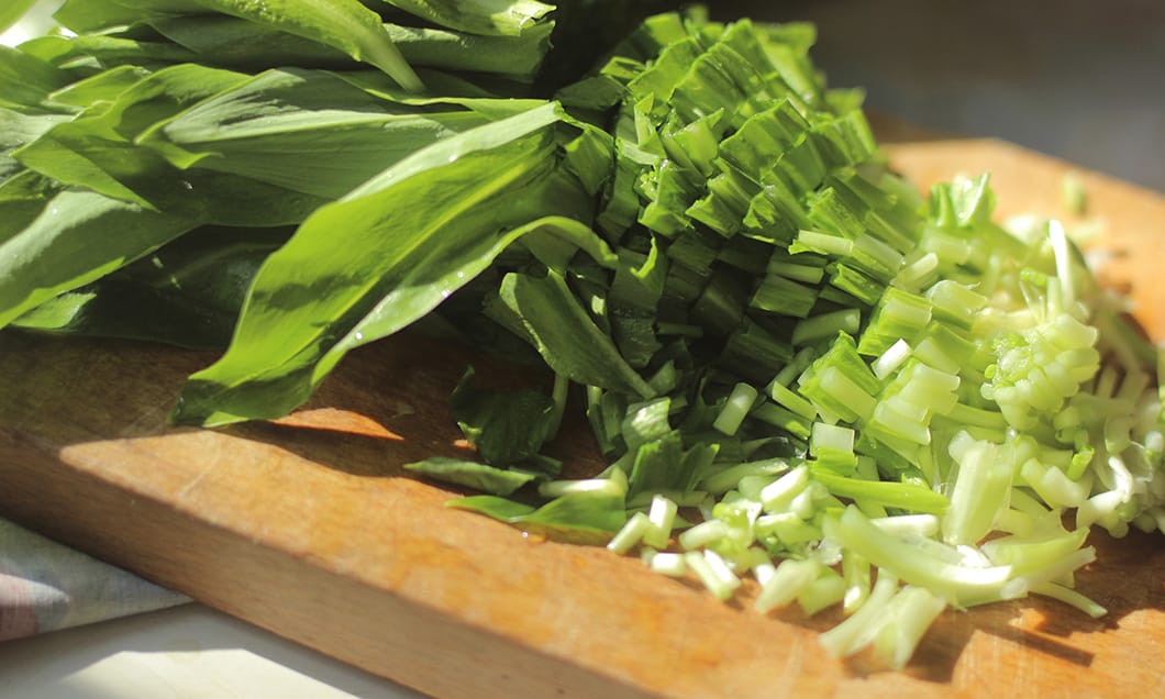 1Zavremo 2 dl belega vina in v njega damo drobno narezane čemaževe liste.