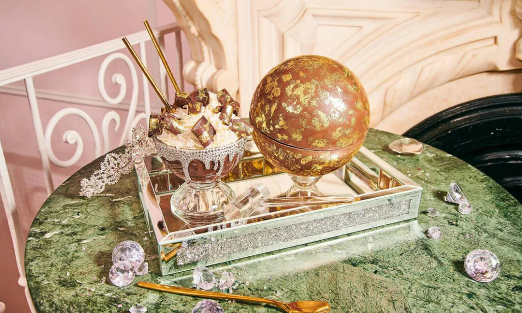 Kelih bo napolnjen s čokolado, izdelano iz kar 14 različnih vrst kakava, čokolada pa bo prekrita s stepeno smetano in s posipom užitnih “diamantnih” bleščic ter čokoladnih opilkov, pozlačenih s 23-karatnim užitnim zlatom.